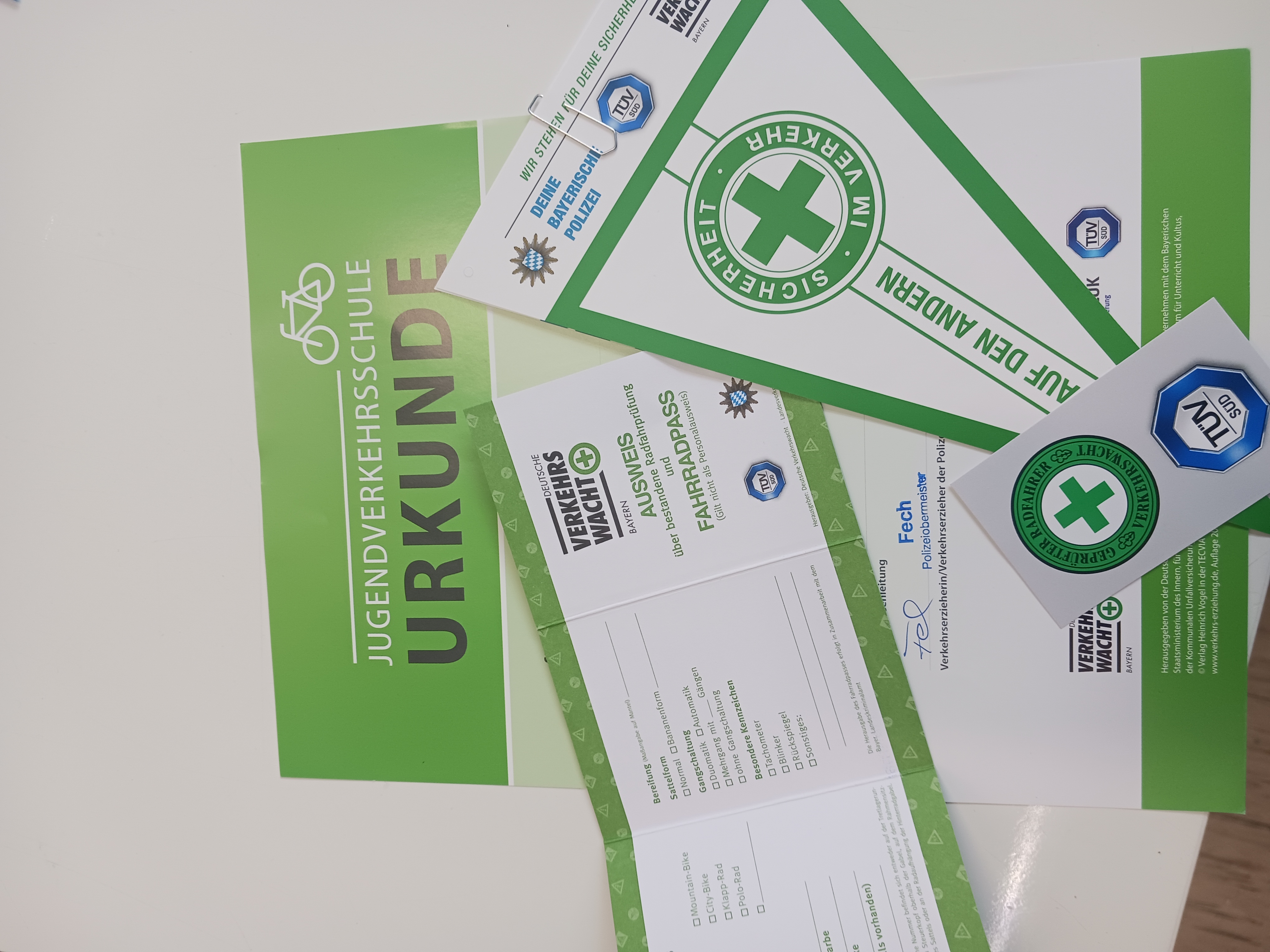 In der Zeit vom 7.10. bis zum 15.10.2025 nahmen 38 Viertklässler an der Jugendverkehrsschule teil. Zusammen mit zwei Verkehrspolizisten und ihren Lehrerinnen lernten sie, wie man sich mit dem Fahrrad im Straßenverkehr verhalten muss. Zum Abschluss gab es eine Prüfung, die alle bestanden haben, sieben Schüler sogar mit Ehrenwimpel. Herzlichen Glückwunsch! Text und Fotos: Dorothee Utta