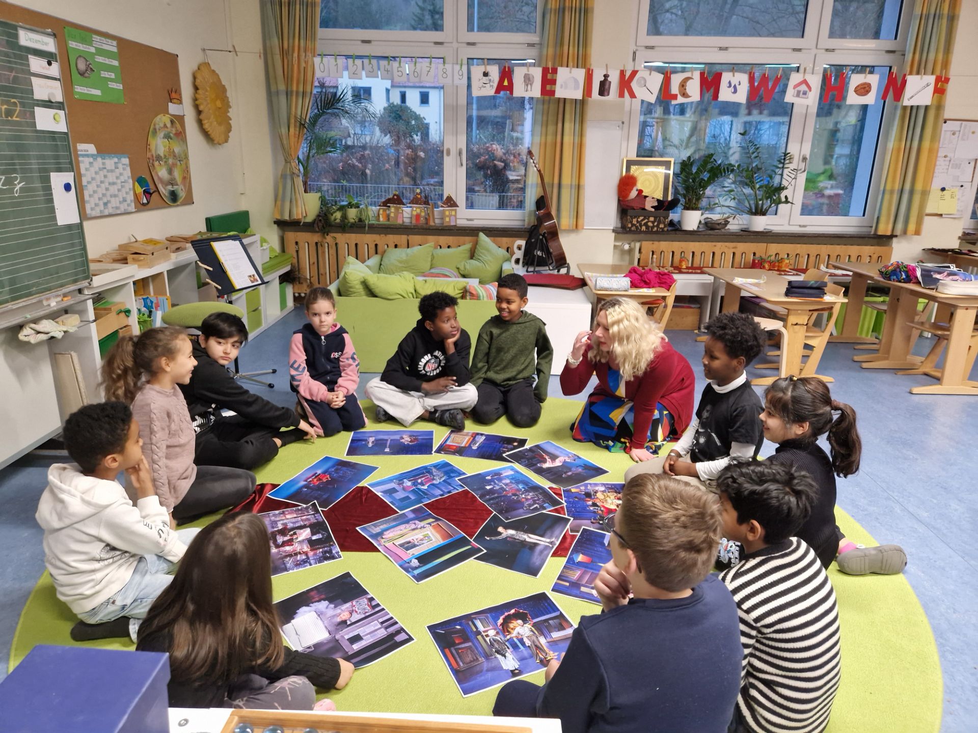 Am Dienstag, den 16.Dezember, war die Theaterpädagogin Jenny Holzer bei uns in der Schule. In Vorbereitung auf das Weihnachsstück " Momo" sprach sie mit den Kindern der ersten und zweiten Klassen sowie der Deutschklasse über die Figuren und die Handlung. Auch einige Szenenfotos konnten wir schon sehen. Wir sind gespannt auf dieses besondere Theaterstück und freuen uns auf Donnerstag.